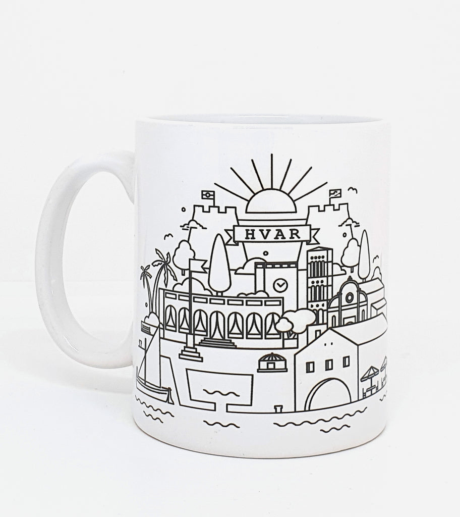 View of Hvar with some of the architectural highlights that Hvar has to offer: the Cathedral of St. Stephen, the Spanish Fortress, the Arsenal building, the Loggia.